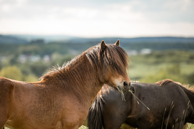 Mittlerweile bewirtschaften wir 35 Hektare in unmittelbare Nähe vom Heidberghof. Unsere Pferde wachsen in kleine Gruppen auf.